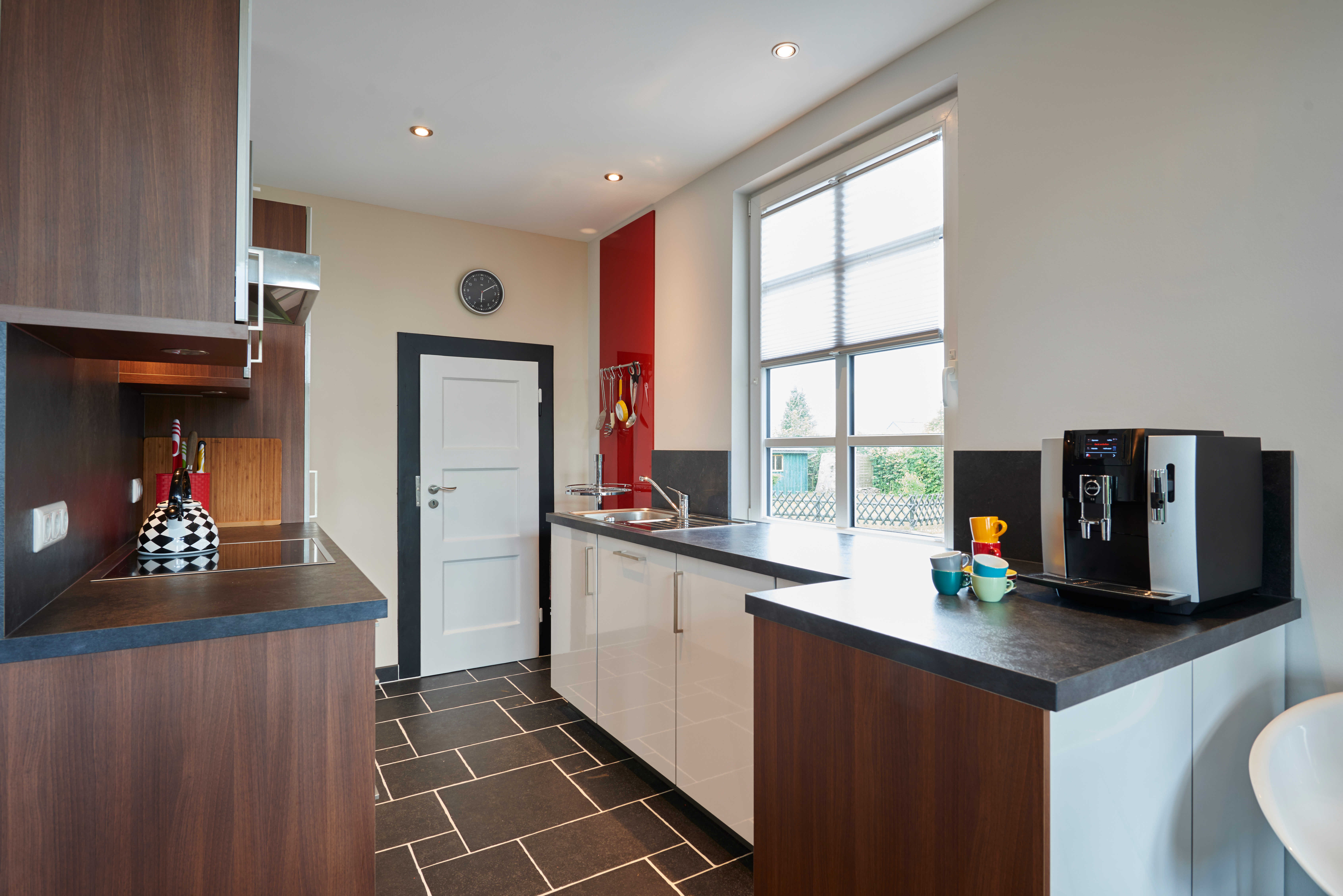 Im Hochparterre ist der Wohn-/Essbereich mit einer modernen Einbauküche,